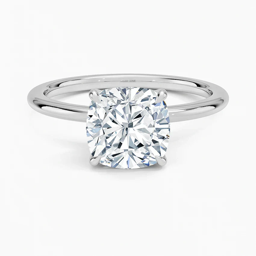 2 Carat Natural Cushion Diamond Engagement Ring in 18K White Gold - GIA / HRD Certified