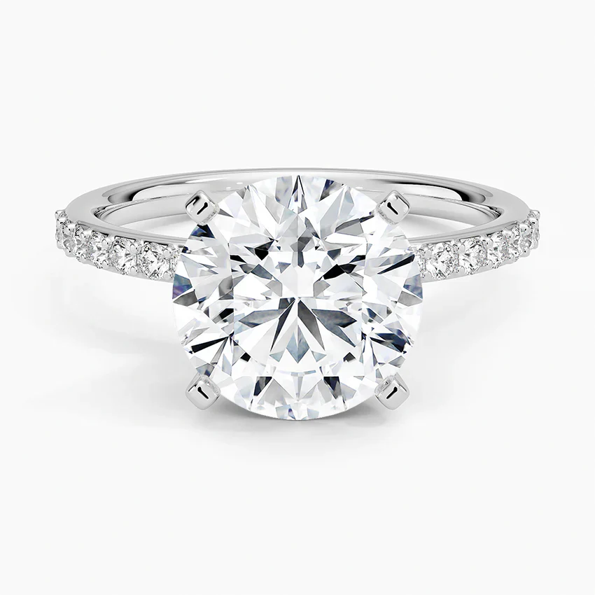 3 Carat Natural Round Diamond Engagement Ring in 18K White Gold - Pave Setting -...