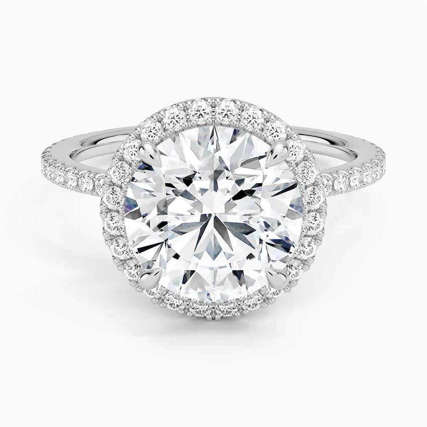 3.5 Carat Natural Round Diamond Engagement Ring in 18K White Gold - Pave with Halo - GIA / HRD Certified