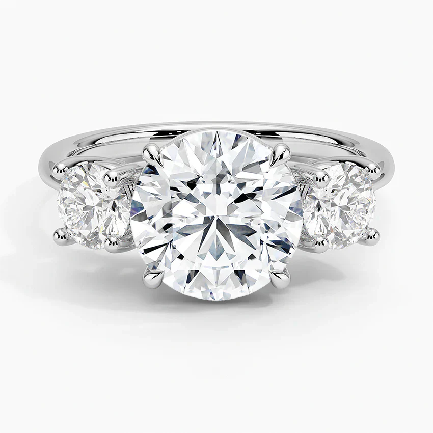 3 Carat Natural Round Diamond Engagement Ring in 18K White Gold - Baguette Trilogy - GIA / HRD Certified