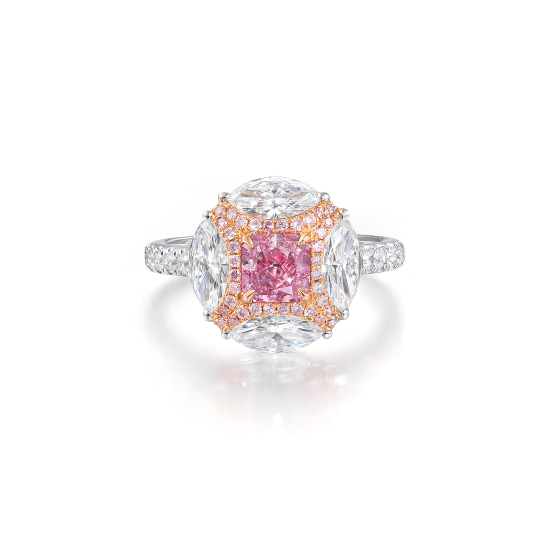 Bubble Gum Pink Diamond Ring in 18K White Gold