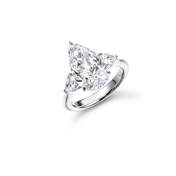 Pear Shape Diamond Ring with Pear Side Stones in 18K White Gold
