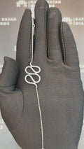 This abstract infinity diamond bracelet features a flowing, contemporary motif that symbolizes elegance, continuity, and modern sophistication. The softly curved diamond-set design rests delicately at the center, suspended on a fine gold chain that creates a graceful and lightweight silhouette on the wrist.