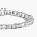 This mesmerizing princess-cut diamond tennis bracelet graces the wrist with a luminous cascade of brilliance, exuding timeless elegance and refined glamour.