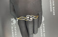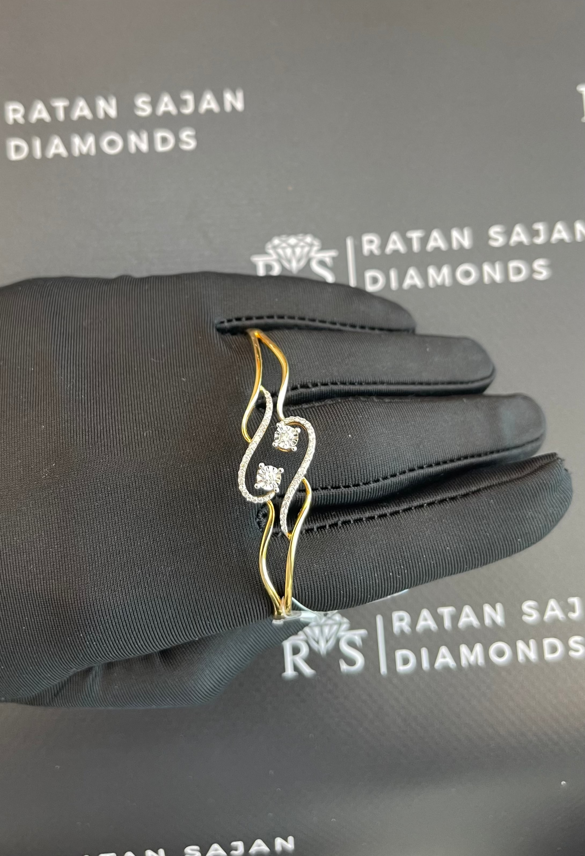 This modern wave diamond bracelet showcases a fluid, open-frame design accented with two brilliant diamonds at its center. The graceful curves of polished gold create a sense of movement and balance, while the diamond-lined contour adds refined sparkle without overwhelming the design.