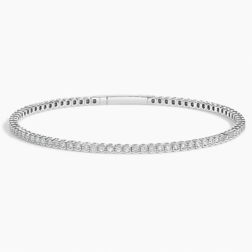 Semi-Bezel Natural Diamond Flexible Tennis Bangle Bracelet in 18K White Gold